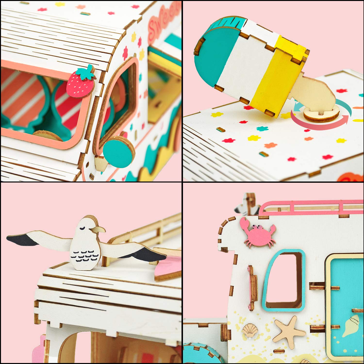 Amazon Com Kids 3d Puzzles For Girls 12 Years Old Cute Ice Cream Truck And Touring Car 2 Set Independent Packaging Wooden Craft Assembly Kit Toys Games